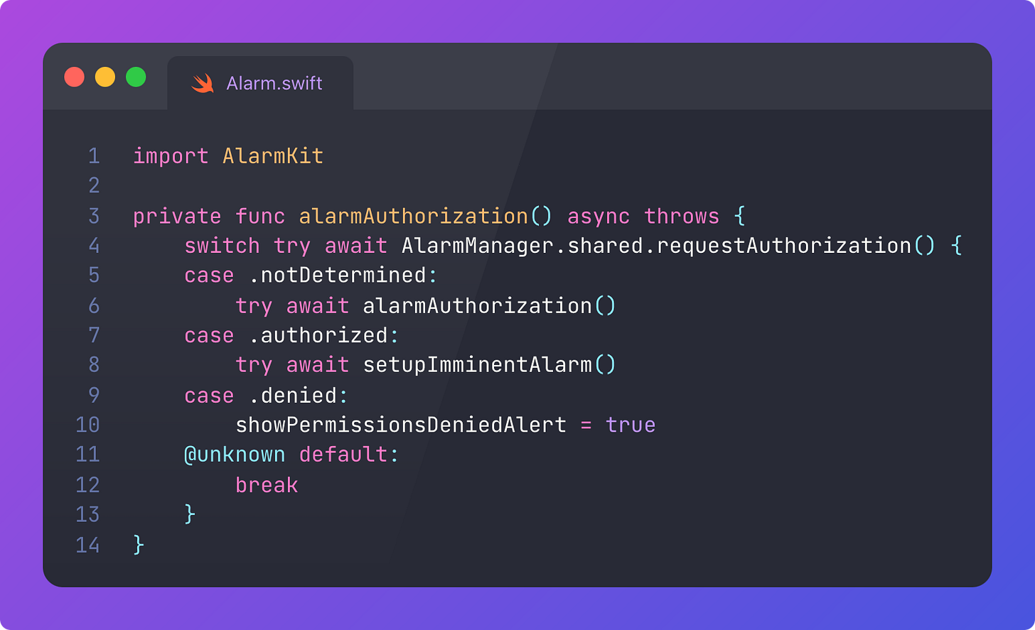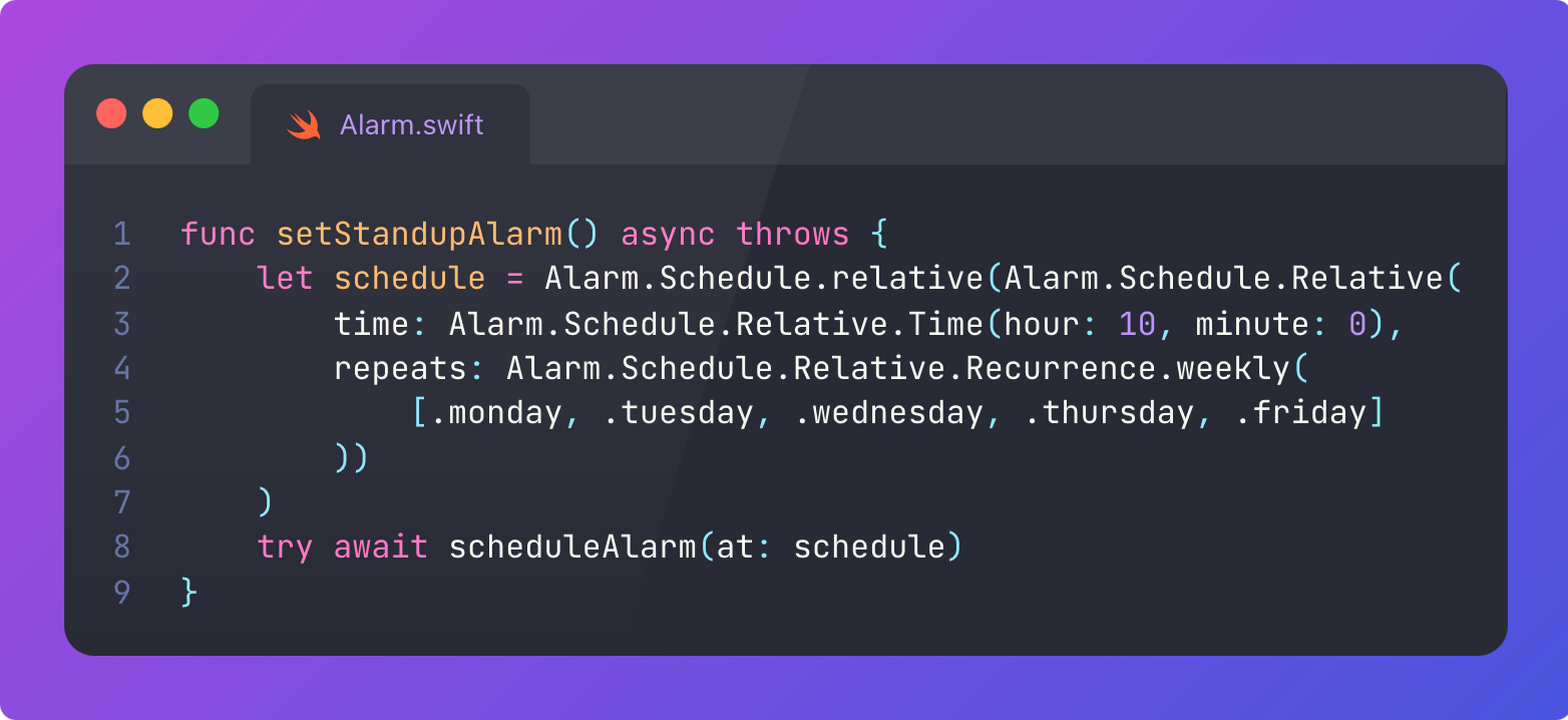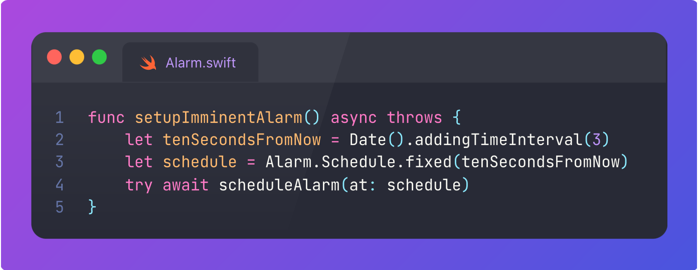 Now we have an idea what it’s doing under the hood, let’s look at how to actually use AlarmKit.