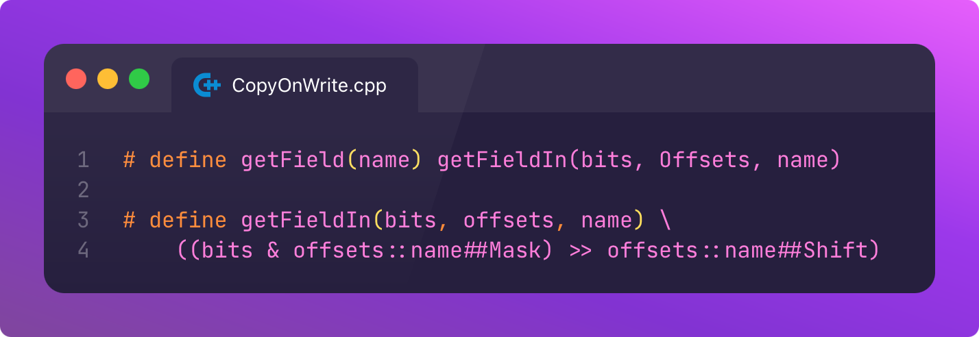 These macros operate directly on the bits stored by RefCount to return the integer value of StrongExtraRefCount. These bitwise operations can be dense, so let’s take this step-by-step:
