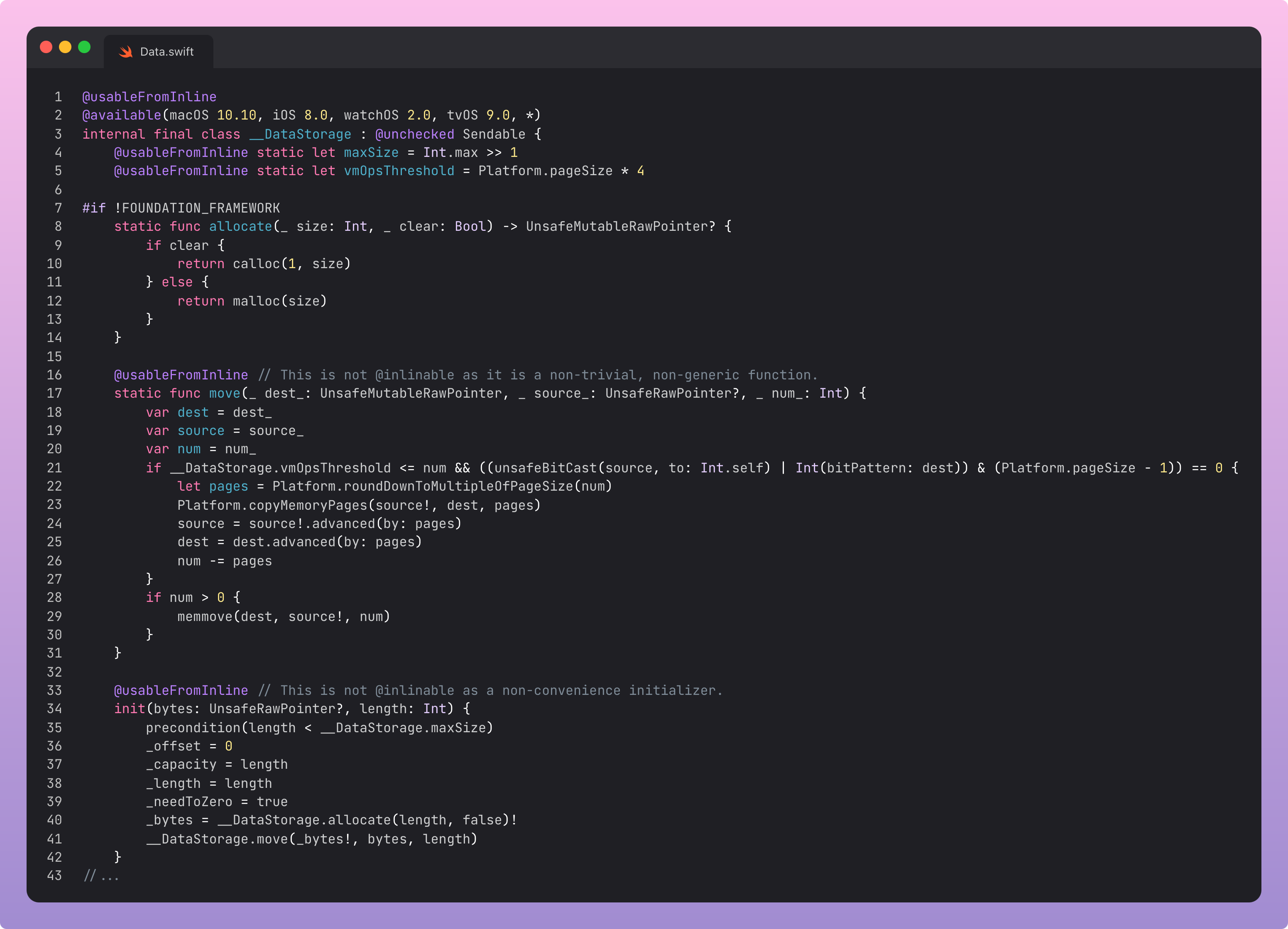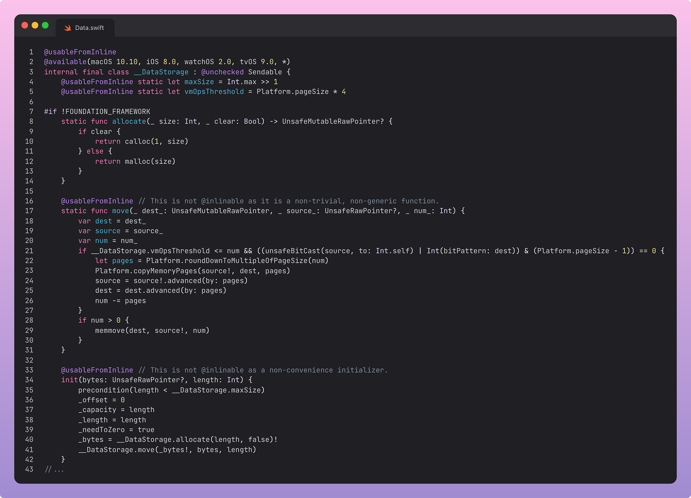 Today, we’re going to look under the hood of swift-foundation and understand exactly how Data is implemented.