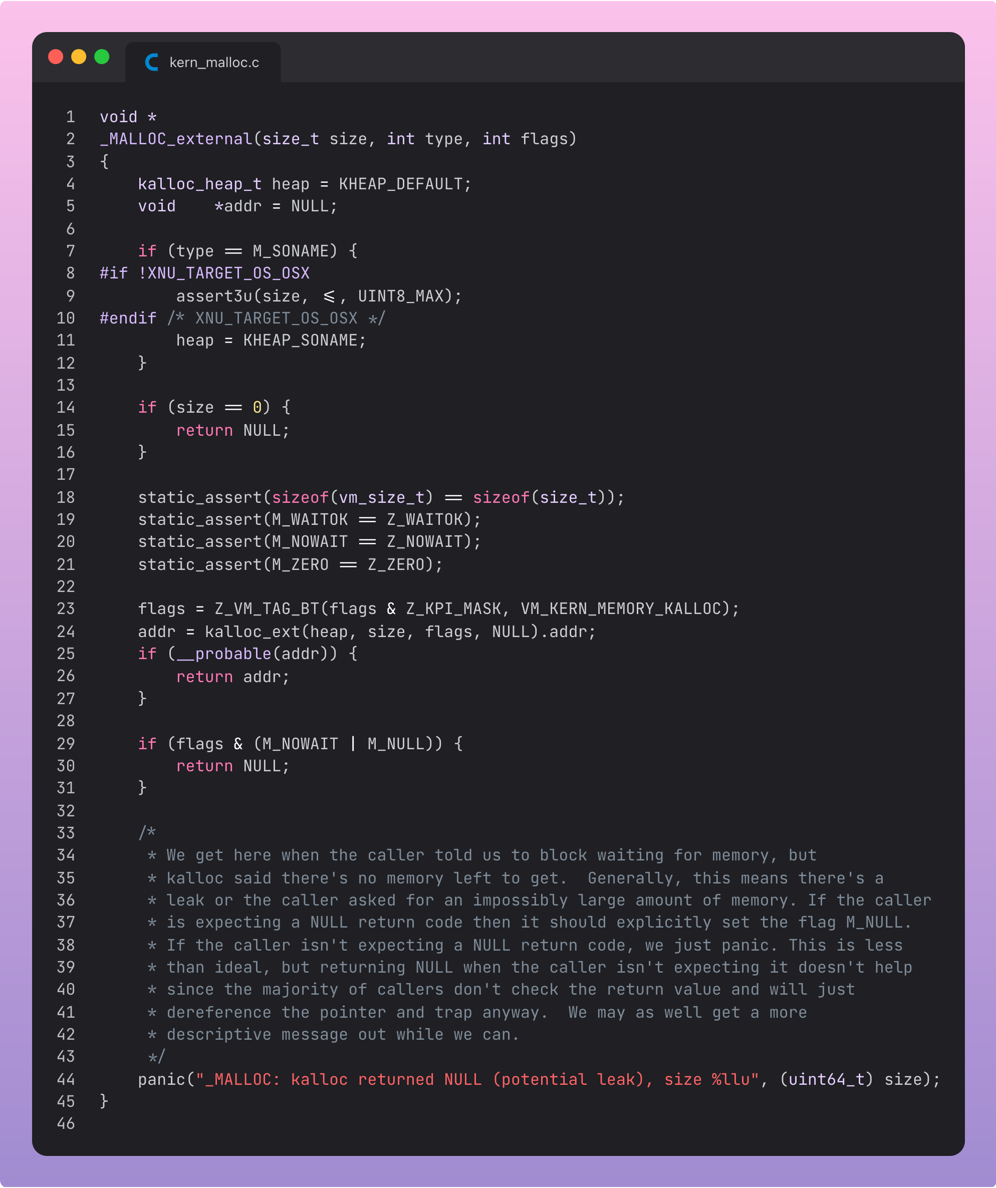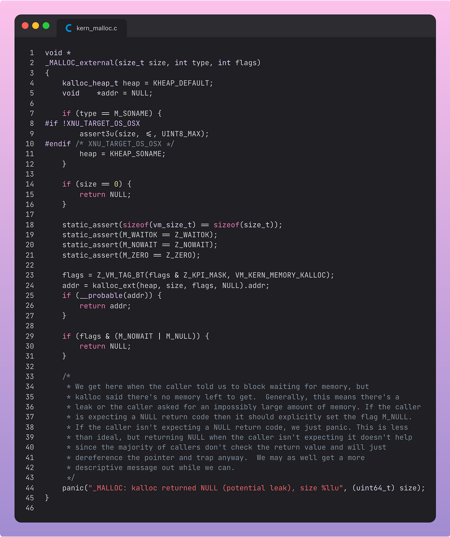 While the implementations are, as you can see, different for different platforms, the core API for libc, the C standard library, is universal. This is the beauty of a ubiquitous language like C forming the backbone of virtually all computing: systems have a common API for implementing common behaviours like allocating memory on the heap, freeing said memory, and comparing bytes.